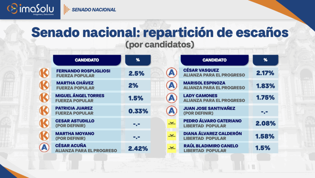 A continuación, se presenta la distribución de preferencias por candidatos al Senado: