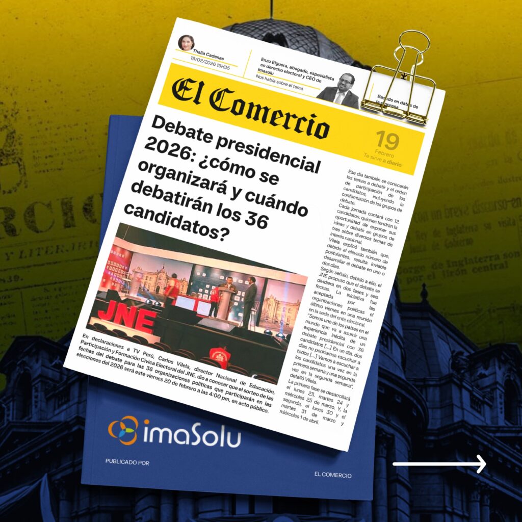 El CEO de IMASOLU, Enzo Elguera, analizó el formato del debate presidencial rumbo a las Elecciones 2026, luego de que se confirmara que el encuentro entre los candidatos se desarrollará en dos fases y seis fechas debido a la participación de 36 postulantes presidenciales.