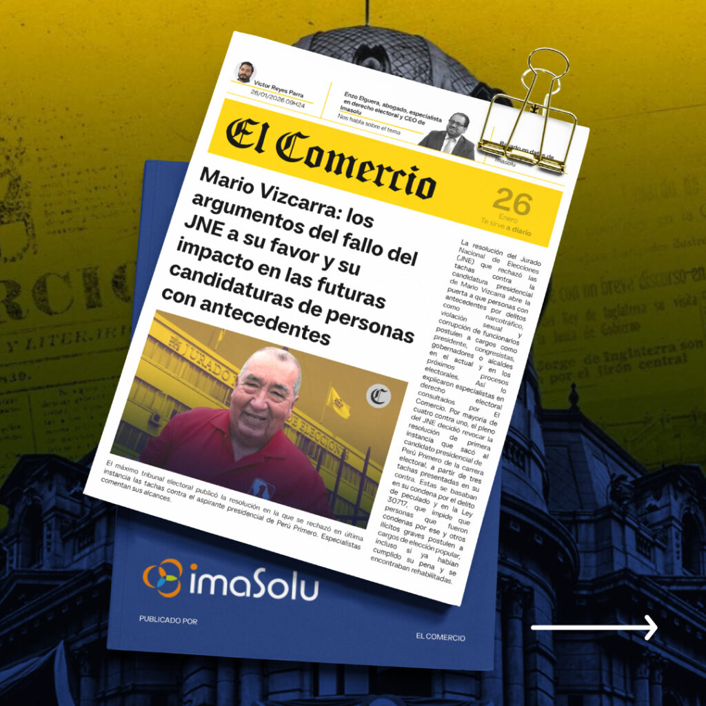 El CEO de IMASOLU remarcó que el impacto del fallo no se limita a una candidatura específica, sino que establece un precedente aplicable a los próximos procesos electorales, incluidos los comicios regionales y municipales. En la práctica, explicó, el criterio adoptado por el JNE modifica el marco de referencia bajo el cual los partidos políticos evalúan y seleccionan a sus candidatos.