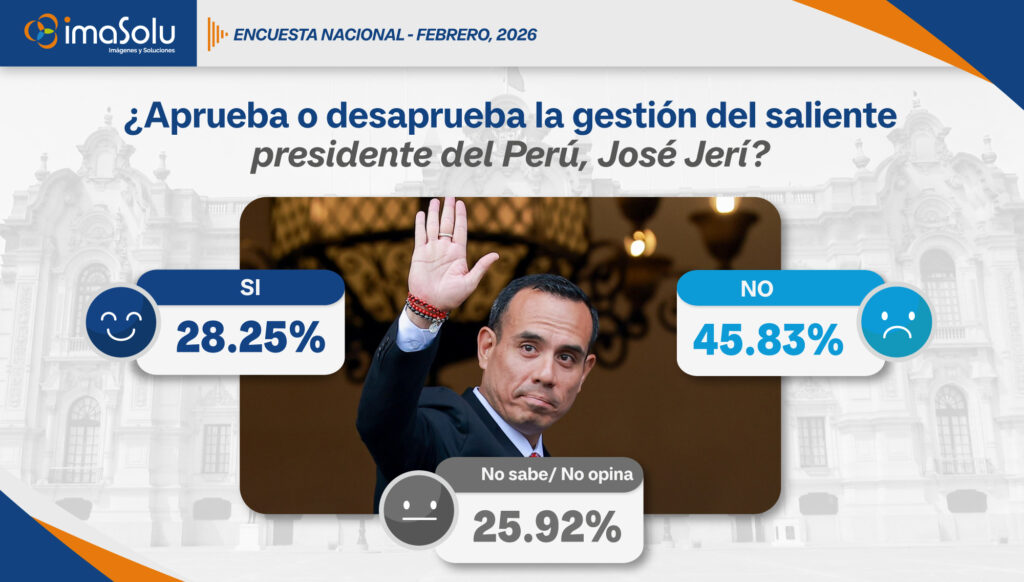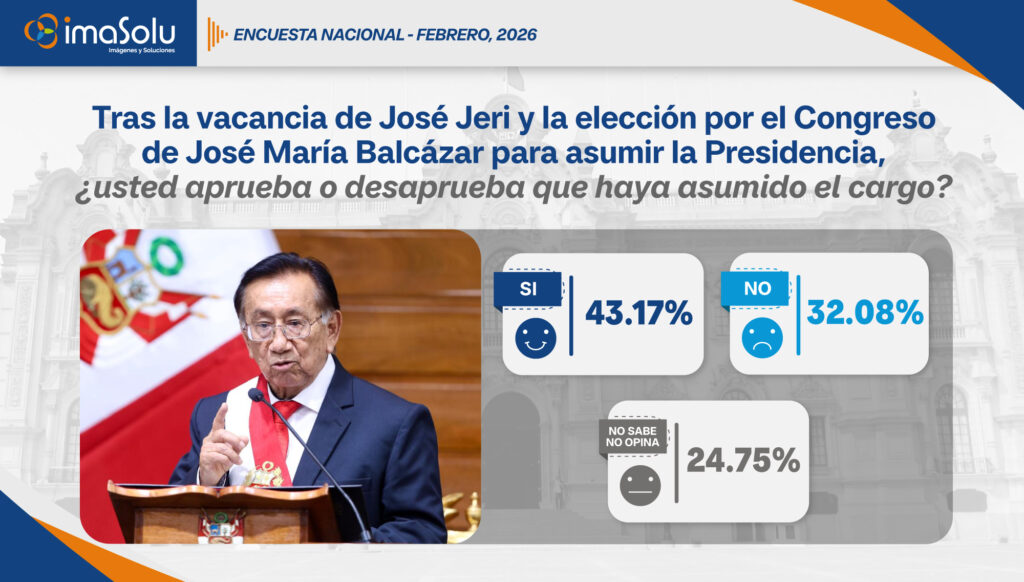 IMASOLU S.A.C. presenta los resultados de la Encuesta Nacional – Febrero 2026, estudio de opinión pública que analiza la percepción ciudadana frente a los principales acontecimientos políticos del país en el contexto de las Elecciones 2026.